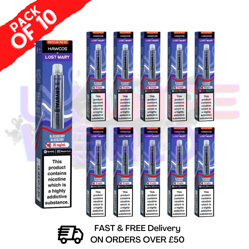 Shop Blackberry Blueberry – Lost Mary Crystal Pro 600 Puff (Box of 10) is a combine for a deep, juicy vape bursting with dark berry flavour and a smooth, balanced fruity finish in every puff Lost Mary Crystal Pro 600!