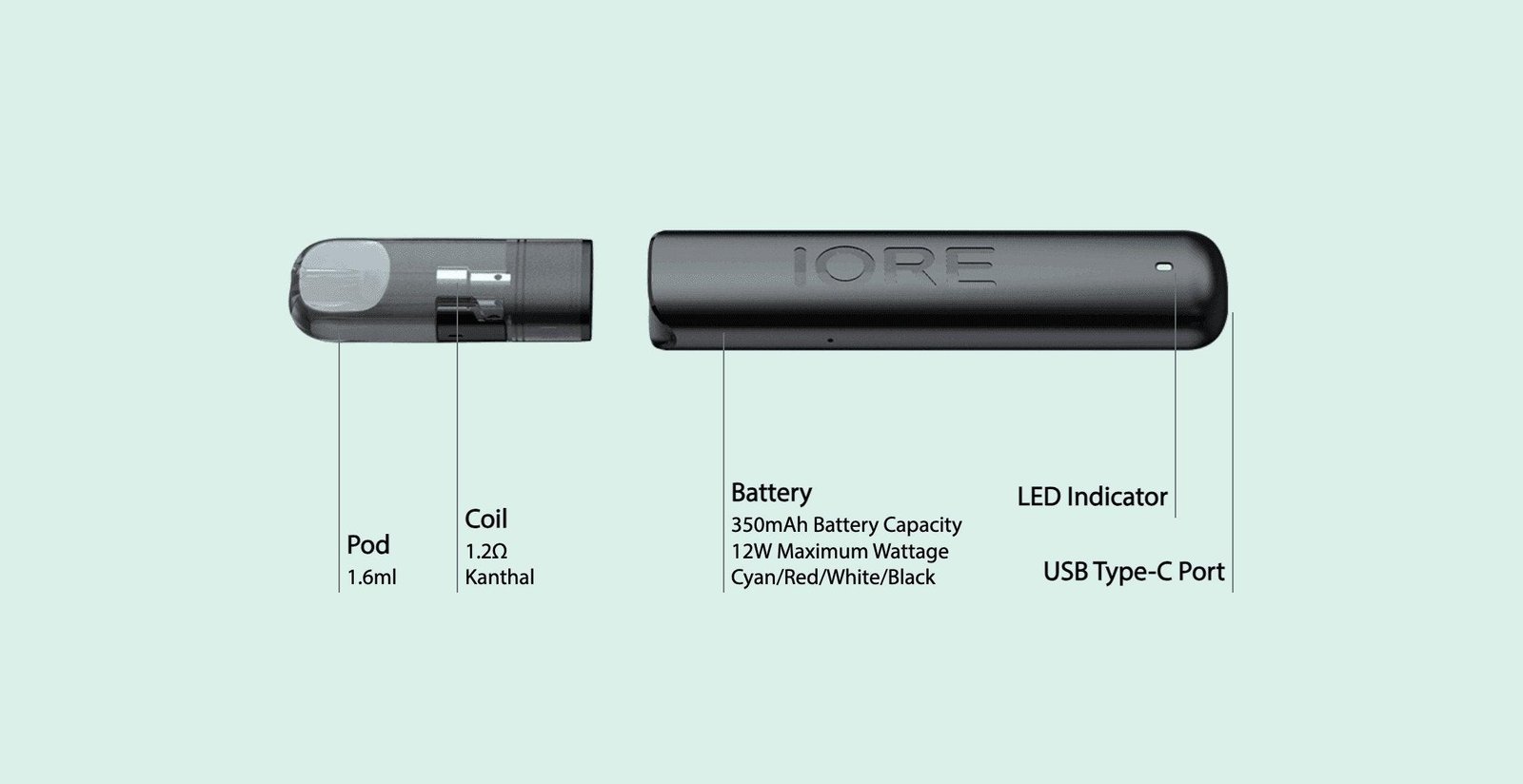 - 1 × 1.2ohm IORE LITE cartridge